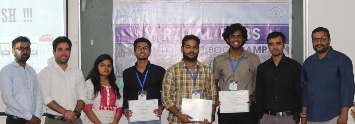 Faculty of Engineering students participated in 10 days boot camp of Virtual labs organised by IIT Roorkee from 10-06-2019 to 20-06-2019. Six students from Computer Science and Engineering Department (Kunal Purbia, Uddaishya, Durgesh Bairagi, Manas Dixit, Priyanshu Lasod and Vedang Saikhedkar) were selected for this bootcamp and won the title of Silver Developer.