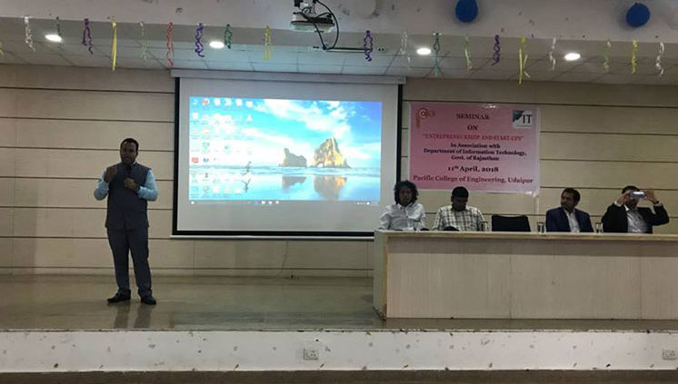 Faculty of Engineering organized a Seminar on Entrepreneurship and Start-ups in association with Department of Information Technology and Communication (DoIT&C), Government of Rajasthan. Keynote speaker was Kapil Soni (CEO, FiveSplash) , Vaibhav Chouhan (CEO, Zigzaw Consultancy), Chaahat Khattar, Madhukar Bhardwaj and Dhawal Singhal (Manager, DoIT&C). Quiz and other activities were also organized and more than 200 engineering students participated in this Seminar.
