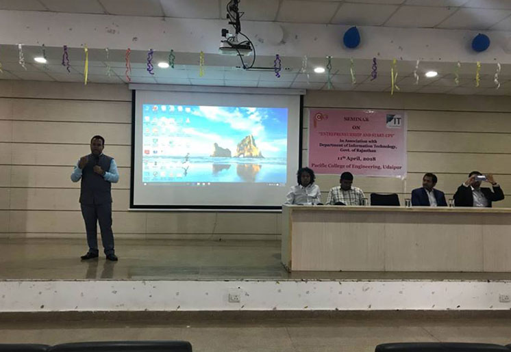 Faculty of Engineering organized a Seminar on Entrepreneurship and Start-ups in association with Department of Information Technology and Communication (DoIT&C), Government of Rajasthan. Keynote speaker was Kapil Soni (CEO, FiveSplash) , Vaibhav Chouhan (CEO, Zigzaw Consultancy), Chaahat Khattar, Madhukar Bhardwaj and Dhawal Singhal (Manager, DoIT&C). Quiz and other activities were also organized and more than 200 engineering students participated in this Seminar.