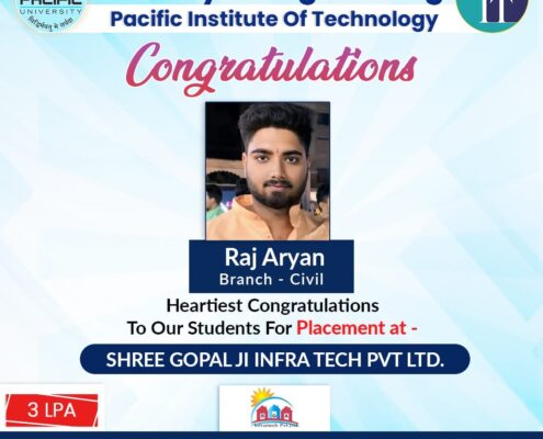 Congratulations to Raj Aryan from Civil Engineering who got placed in Shree Gopal Ji Infra Tech Pvt. Ltd. at 3 LPA.