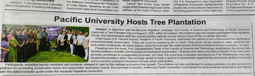 Sapling Plantation done at Faculty of Engineering, Pacific University